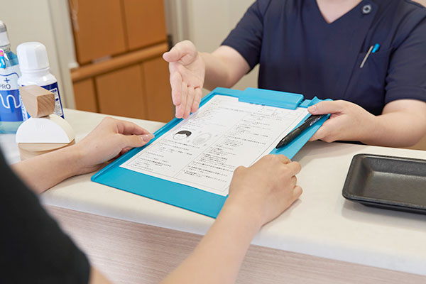 問診票をもとに、症状やお悩みについて詳しくお伺いします。治療に対するご希望や不安なことがあれば、どんな小さなことでも遠慮なくご相談ください。