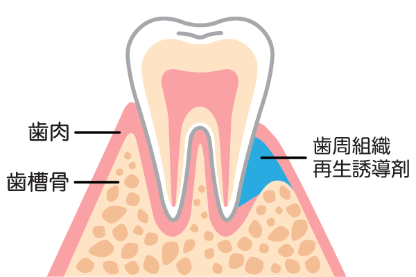 歯周病が進行し、歯を支える骨が大きく失われてしまった場合には、歯周組織の再生治療を行うことがあります。保険適用の「リグロス」や、自由診療の「エムドゲイン」という特殊な薬剤を使用し、溶けてしまった骨の再生を誘導する治療です。